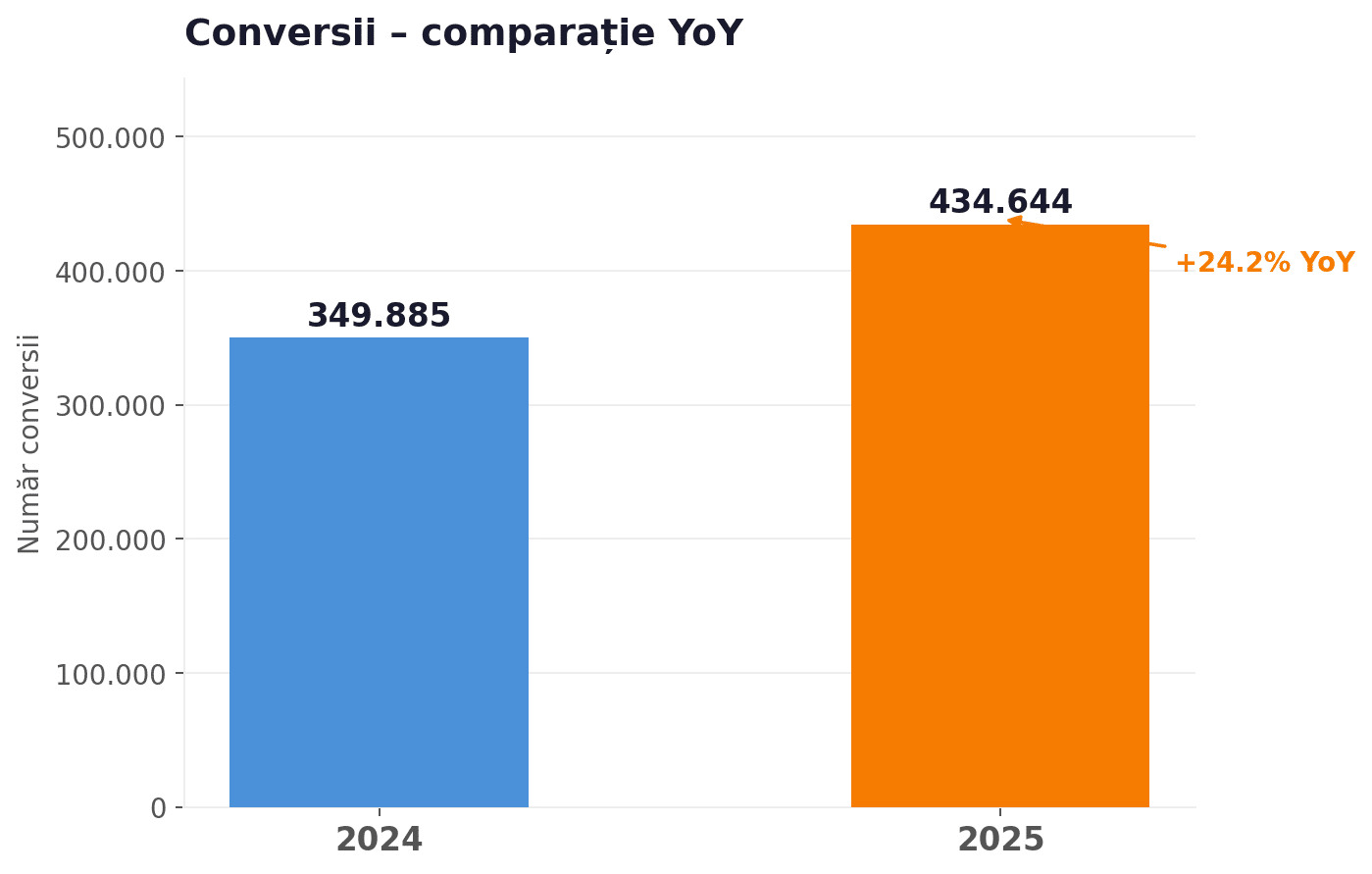 Valoarea totală a conversiilor a crescut cu +35,64% YoY